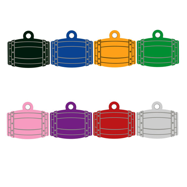 On our lightweight aluminium tags, we use a contrasting crisp white laser engraving that cuts cleanly through the anodised surface. The result is a bold, high-contrast finish that’s easy to read at a glance—no matter the colour of the tag.