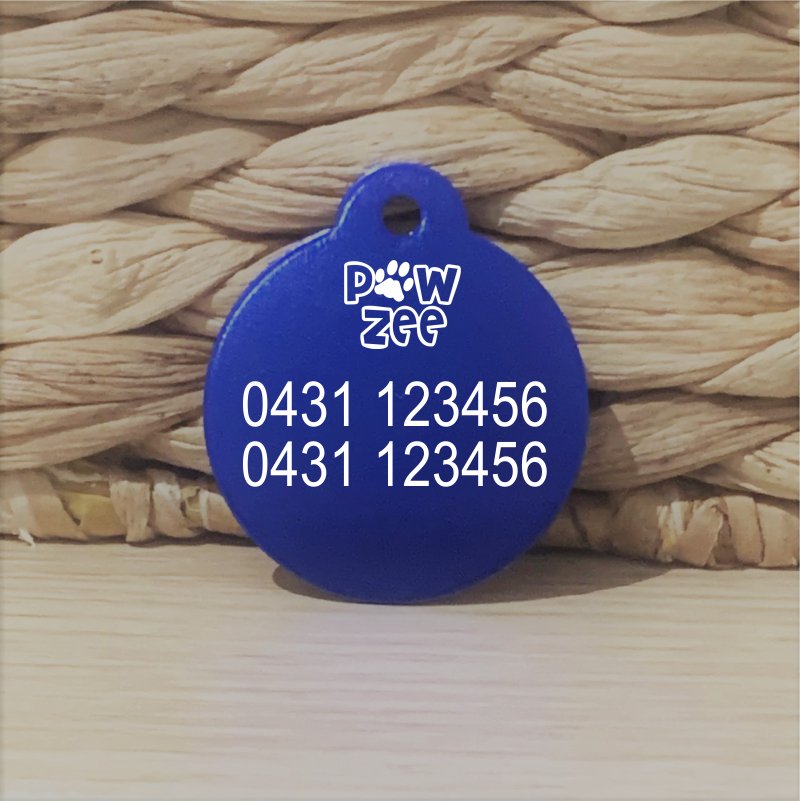 They are designed as handy round pet tags and fit nicely to any collar by attaching them to the split ring that is provided. The colour finish is bold and adds some personality to it, but it has a vital purpose. Made out of a durable dog tag aluminium alternative, this item is durable and long-lasting. Add to Cart now and ensure your pet.