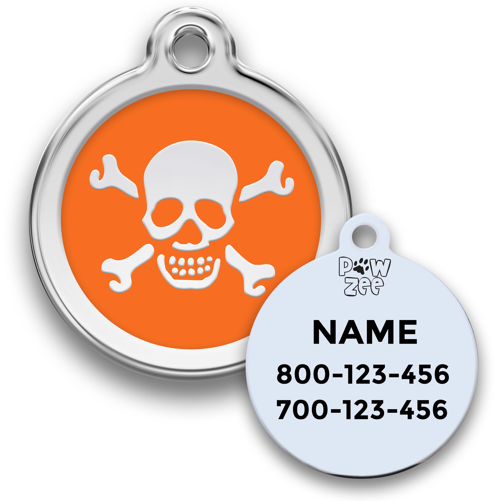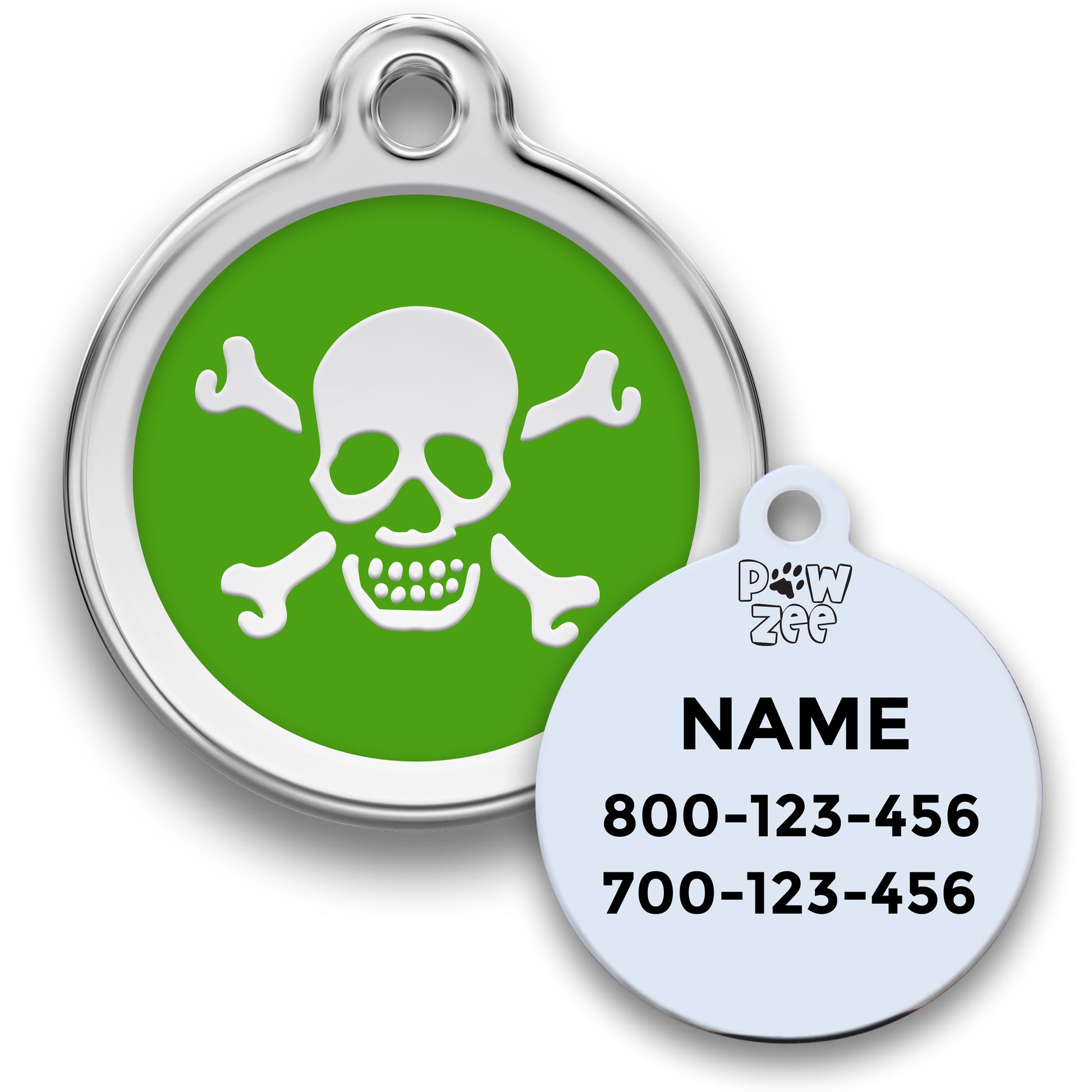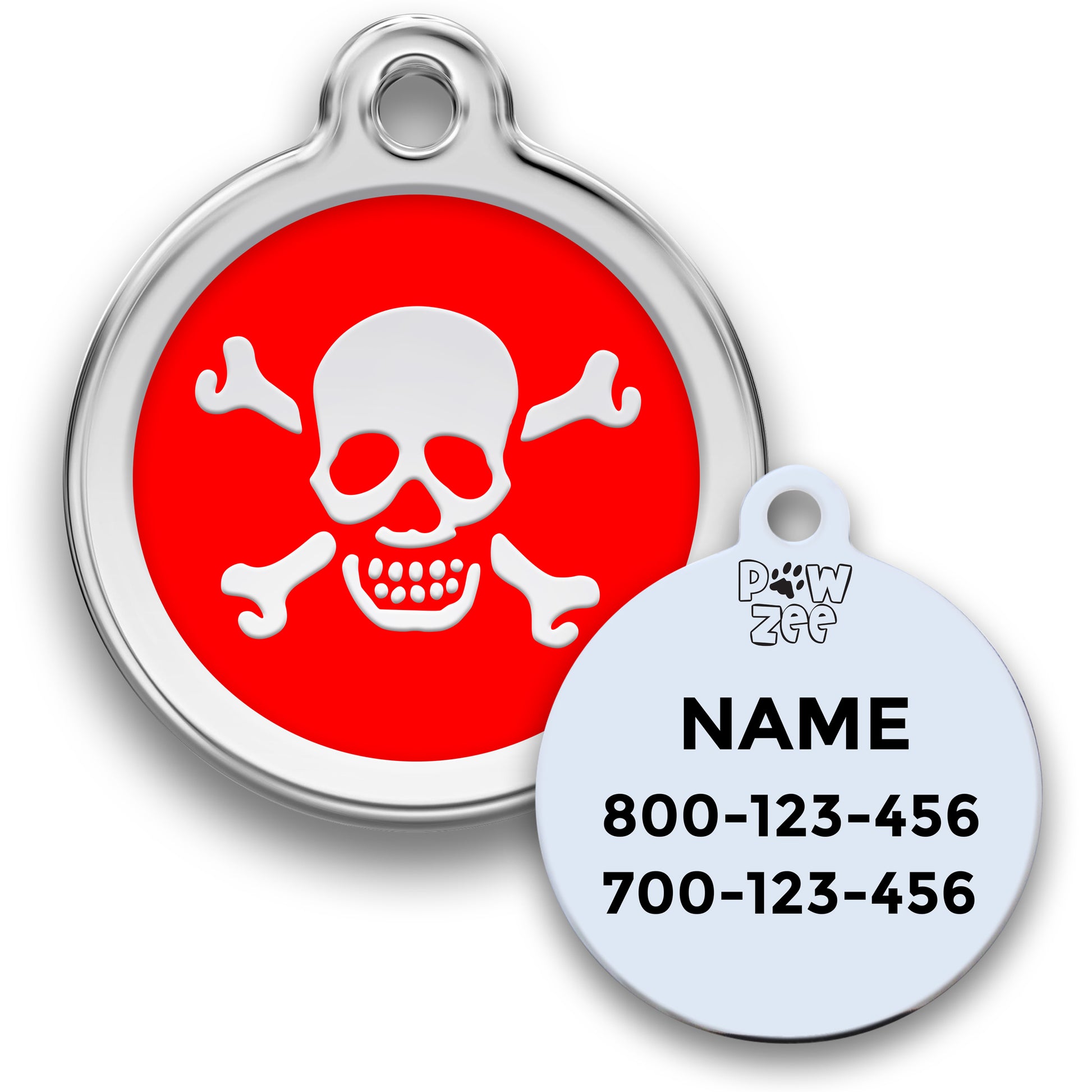 Make your pet accessory stand out by getting an edgy skull pet tag, which will give your pet the attitude and security it needs at the same time. In addition to the daring appearance, it gives you a sense of security, and even when you lose or harm your pet, you know where to find it. The enamel finish provides the skull with a look of emphasis, and the stainless steel core gives it impregnable strength.